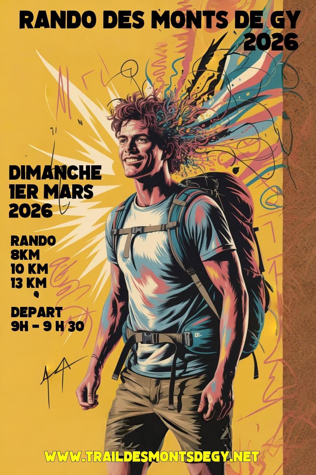 Dans le cadre du traditionnel trail des Monts de Gy, les randonneurs sont invités à venir profiter de 3 parcours au choix : 8, 10 ou 13 km. Les départs auront lieu entre 9h et 9h30 (place de la mairie) Retrait des dossards au complexe sportif.