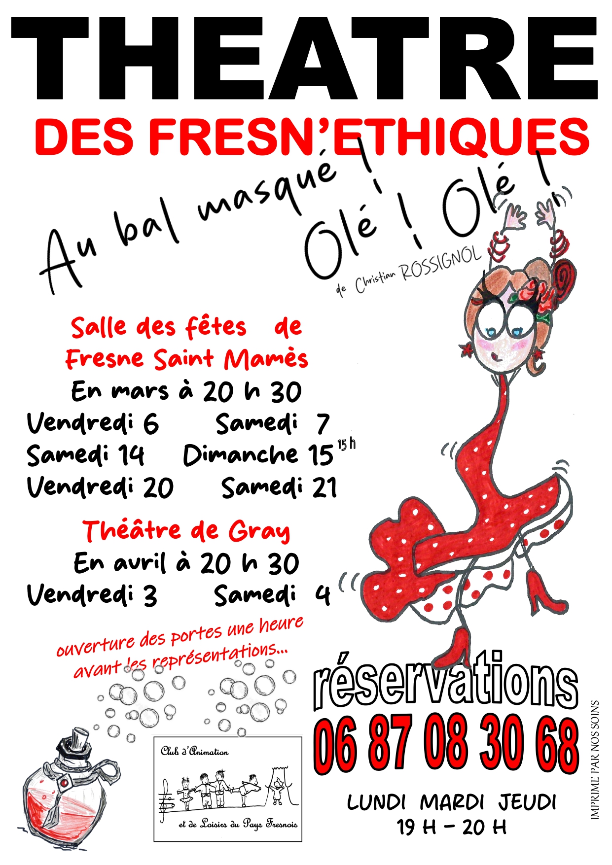 Fous rire et délires c'est ce qui vous attend avec la troupe "Les Fresn'étiques" dans la pièce "Au bal masqué ! Olé ! Olé ! "