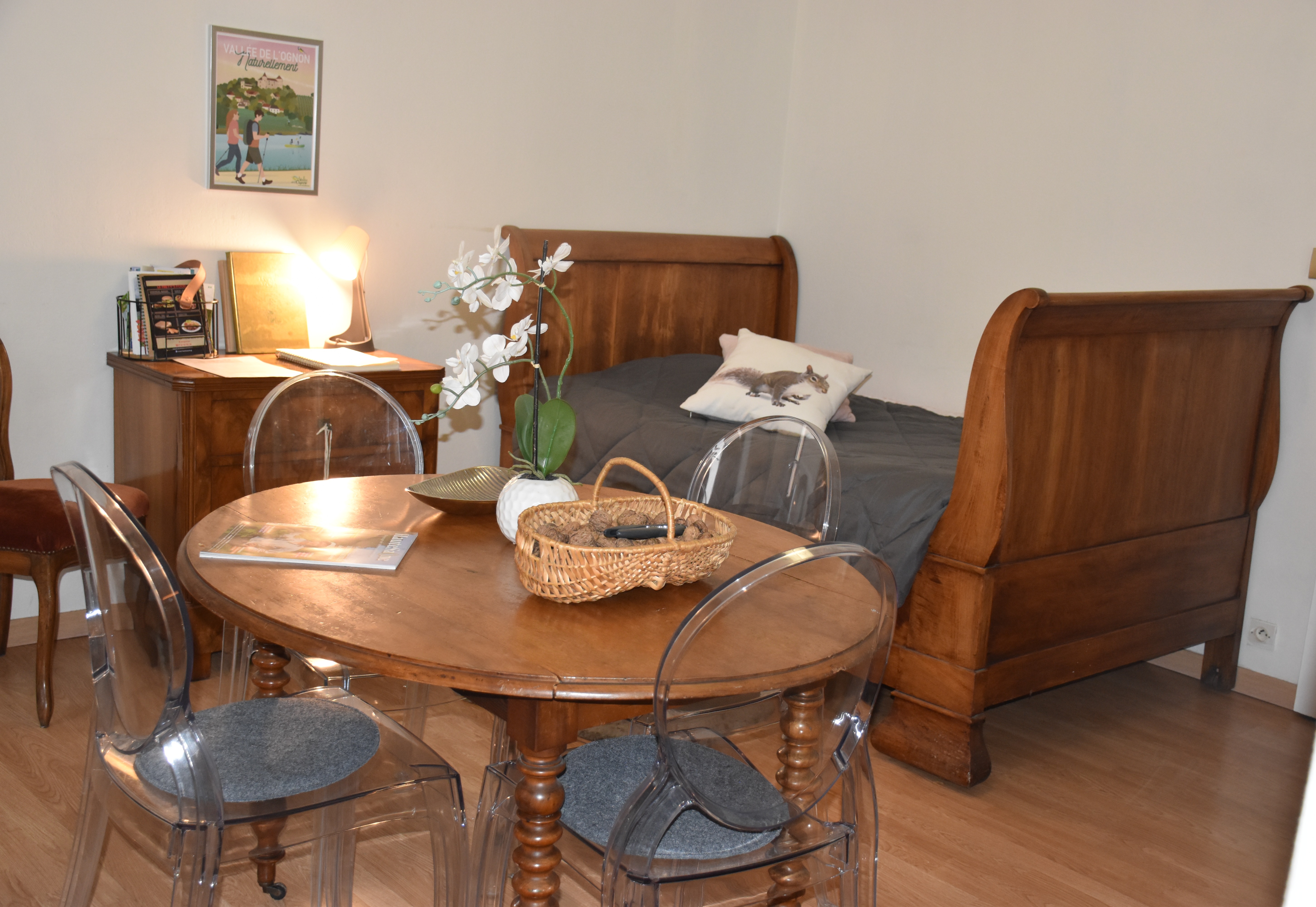 Cette chambre indépendante, mitoyenne avec la maison de la propriétaire, offre un lieu paisible, soigneusement décoré. L’accès est entièrement autonome, pour un séjour en toute liberté. Elle se compose d'une pièce de vie avec un petit coin sous la cheminée, qui permet de profiter de boissons et de douceurs pour bien commencer votre séjour, et qui possède aussi un lit bateau de 90. Dans la grande chambre, qui donne sur le jardin, un lit double en 180 et un lit d'appoint. . La salle de bains, possède une machine à laver. Les pèlerins sont le bienvenus, les familles : lit parapluie, chaise haute, jouets et livres sont prévus pour les plus petits. À l’extérieur, bien qu’il n’y ait pas d’accès direct au jardin, les hôtes peuvent être invités à en profiter en fin de journée, à partir de 18h00, pour un moment de détente dans un cadre agréable. Deux vélos sont prêtés pour explorer les environs, un stationnement est disponible sur place, et les animaux sont acceptés. La propriétaire met un soin particulier à accueillir chaque voyageur avec attention et générosité, pour que vous vous sentiez véritablement comme chez vous, le temps d’une parenthèse paisible à Bucey-lès-Gy, entre calme de la campagne et découvertes locales.